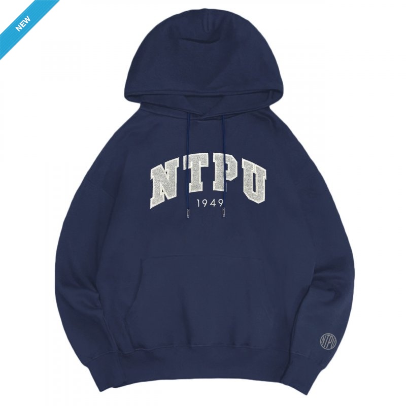 【2025新品上市】NTPU立體毛巾繡落肩帽T_經典藍