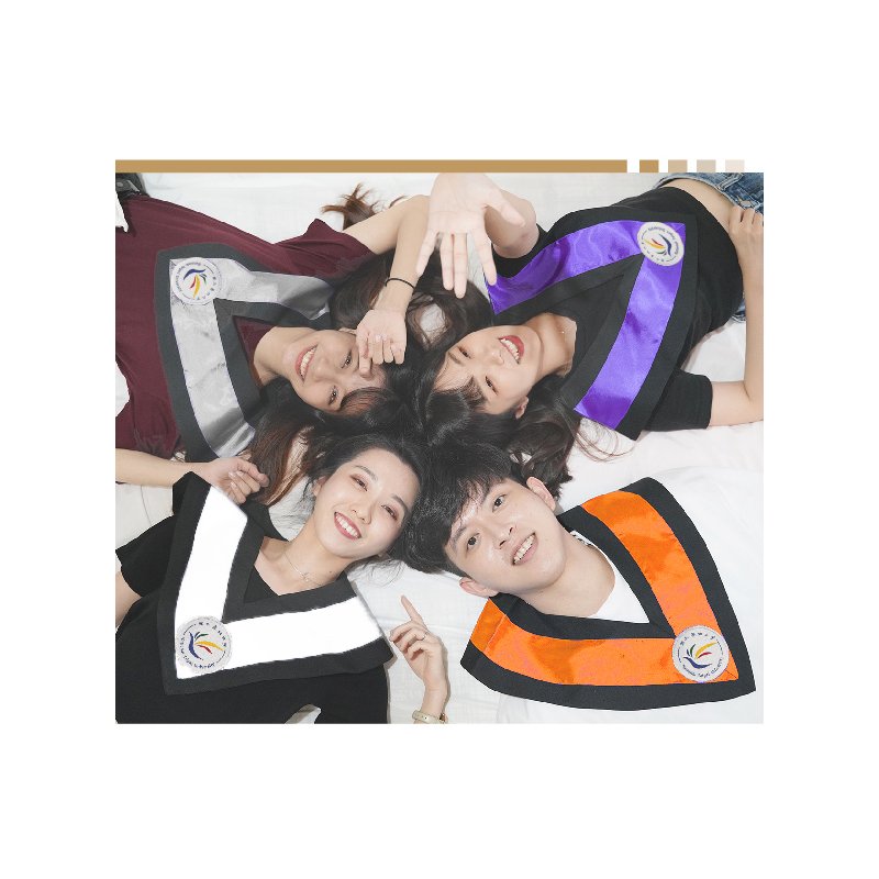 空領巾為梅花樣式,可貼上任何校徽魔鬼般布標